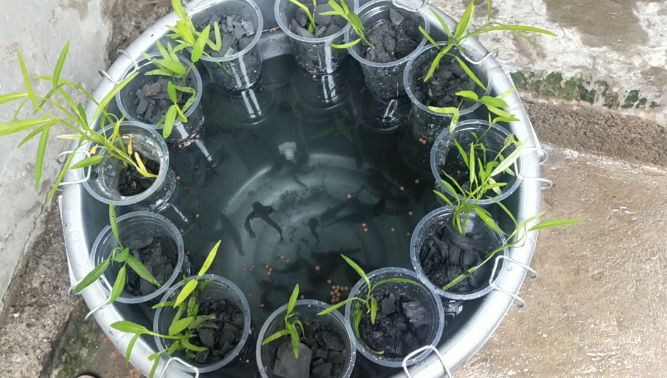 Sediakan gelas plastik untuk tempat bibit kangkung sebanyak 15-18 buah lubangi dengan solder di bagian bawah gelas dan sampingnya secukupnya. Akuaponik merupakan bio-integrasi yang menghubungkan akuakultur berprinsip resirkulasi dengan produksi tanamansayuran hidroponik Diver 2006. Sistem akuaponik merupakan salah satu teknologi yang mengintegrasikan budidaya ikan secara tertutup resirculating aquaculture.