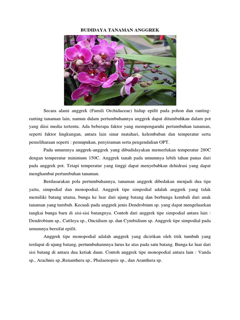 Makalah tentang budidaya tanaman anggrek. Contoh Makalah Makalah anggrek 1. Anggrek merupakan tanaman berbunga cantik yang bisa menambah estetika rumah. Pada saat ini metode kultur in vitro merupakan salah satu cara yang mulai banyak digunakan dalam perbanyakan klon atau vegetatif tanaman anggrek Anonimous.